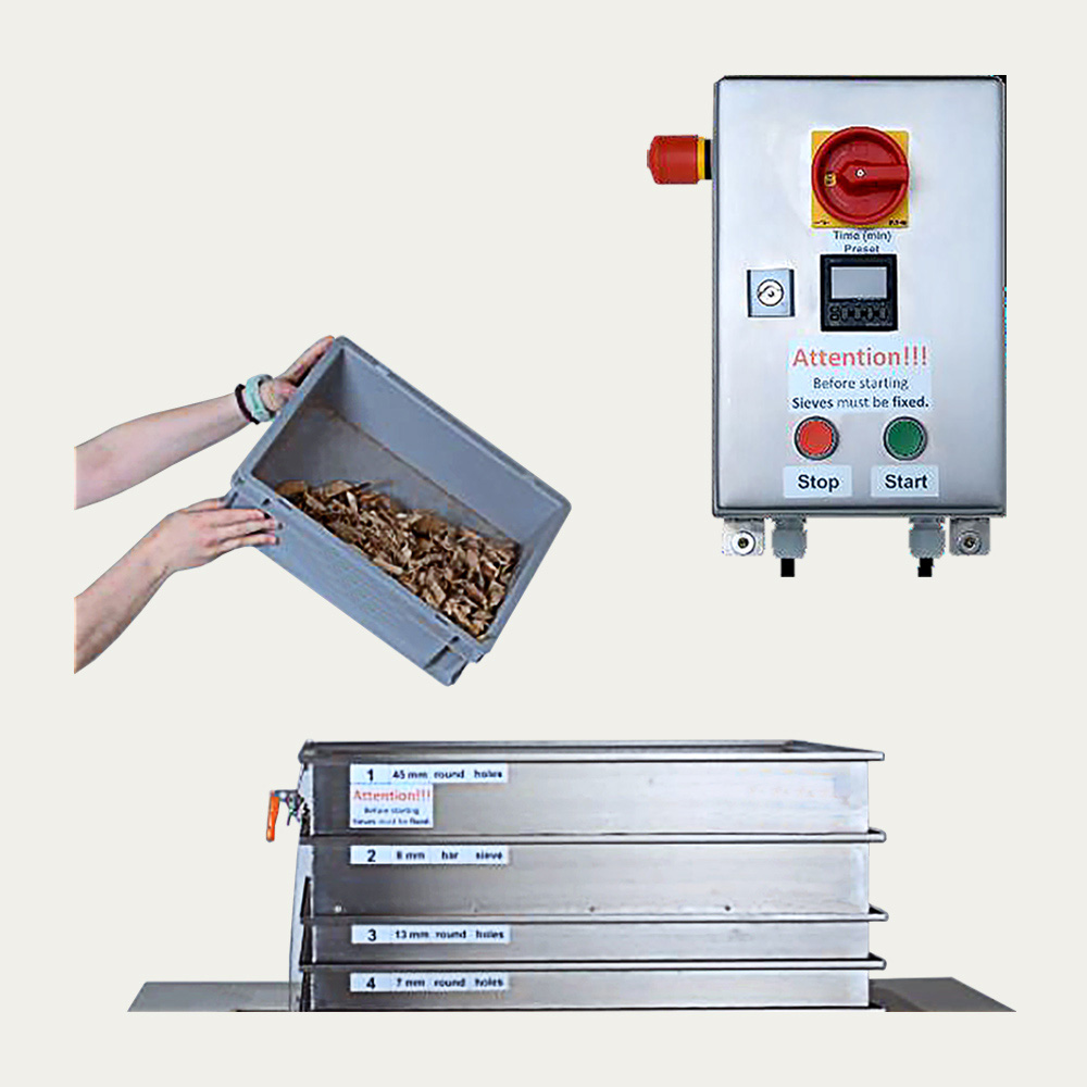 Equipo para una rápida clasificación y análisis por tamaños de astillas y virutas de madera.